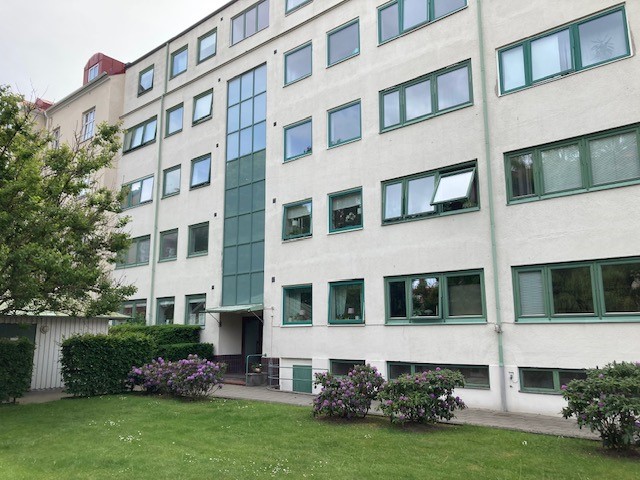 Mindre fastighet med endast två lägenheter per våningsplan.