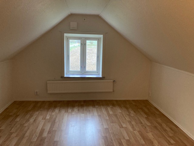 På ovanvåningen finner ni 2 mindre rum (varav det ena är väldigt litet) samt 2 mindre klädkammare. Trappan upp till ovanvåningen är smal och brant.